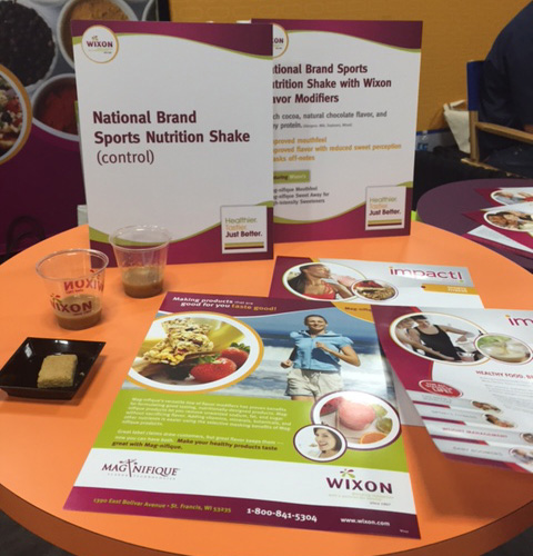 Wixon presented concept products like the Reduced Sugar Oatmeal Fiber Bar, the National Brand Sports Nutrition Shake and the National Brand Single Use Energy Water Enhancer in Black Cherry to show off their proprietary flavor modifiers for nutritional products. The flavor modifiers can be used to reduce sugar, improve mouthfeel, mask off-notes and more.