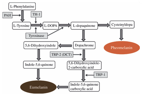 - Tyrosinase-related proteins (TRP-1,2) similar to tyrosinase.