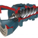 Figure 3. SKY airend – rotary screw airend with four bearing arrangement on discharge: roller, angular contact and ball. Figure courtesy of Kaishan Compressor.