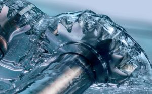 Water, used as a functional constituent of emulsion-based lubricants, is an effective coolant, and it undergoes little to no shear thinning. Photo courtesy of Klüber Lubrication NA LP.