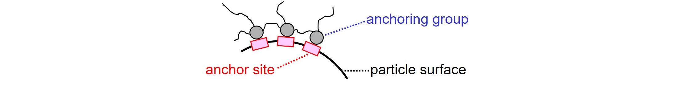 To do their job, dispersant molecules must be adsorbed at the surface of the solid particles. The chemical composition of the surface of a particle governs what dispersants will be able to adsorb strongly at that surface. Adsorption behavior can be influenced by choosing the right anchoring groups, being part of the dispersant molecules, or by applying the proper post-treatment of the particles. The latter is especially important with respect to hydrophobic particles, like most organic pigments and carbon blacks. The particles of untreated carbon black pigments, for example, are hydrophobic because the surface consists (mainly) of carbon. It is difficult to adsorb polymer molecules at the surface of hydrophobic particles.