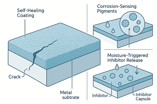 - Smart Coatings: Self-healing microcapsules, pH-responsive corrosion inhibitors, and thermochromic pigments that provide visual cues for degradation or temperature thresholds.