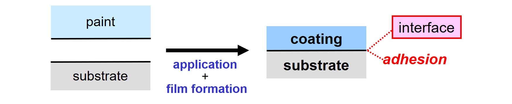 Excellent adhesion on the substrate is a key requirement for most coating systems. The quality of the substrate-coating interface, and by that the adhesive strength, is governed by the quality of the paint, the condition of the substrate, the application process and film formation.