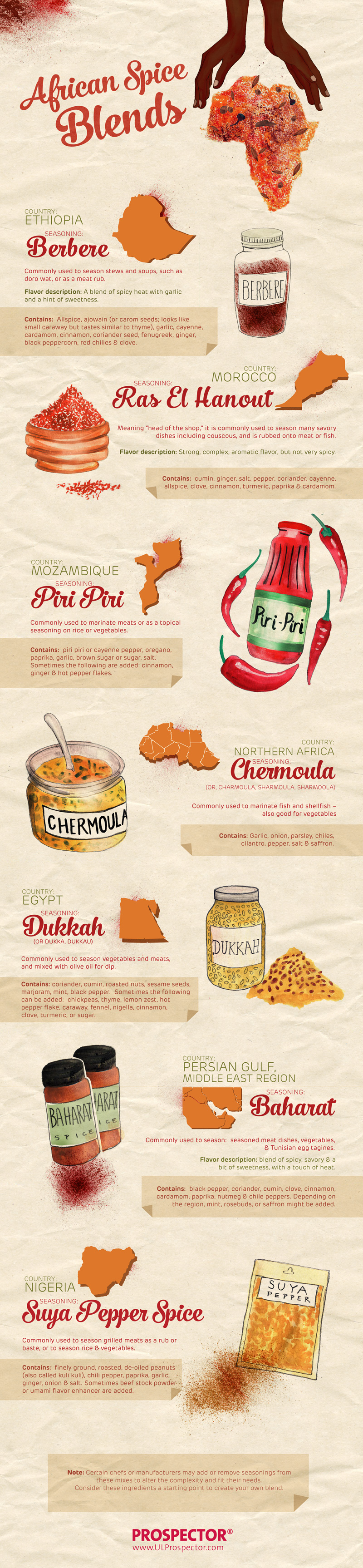 Heard of ajowain, piri piri, kuli kuli or chermoula? Unique flavors from around the world are bringing inspiration to more and more food products. In this infographic, we explore a variety of savory and sweet African spice blends with ingredients that just might make your next formulation a true innovation.