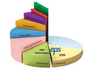 The use of low-VOC capable, all-acrylic binders in gloss consumer paints is common; however, they are less frequently used in high-traffic commercial and institutional coatings due to poor chemical and abrasion resistance. EPS® 2799 has been developed to match or surpass a single-component, pre-catalyzed water-borne epoxy for chemical and cleaner resistance in the institutional space. It also excels in abrasion resistance and other hardness properties in the architectural space. Not only does EPS® 2799 excel in hardness and resistance properties, it has versatility in ease of formulation in which simple drop-ins are typical over a wide-range of sheens. Delivering ultimate performance, EPS® 2799 offers versatility over a wide application space.