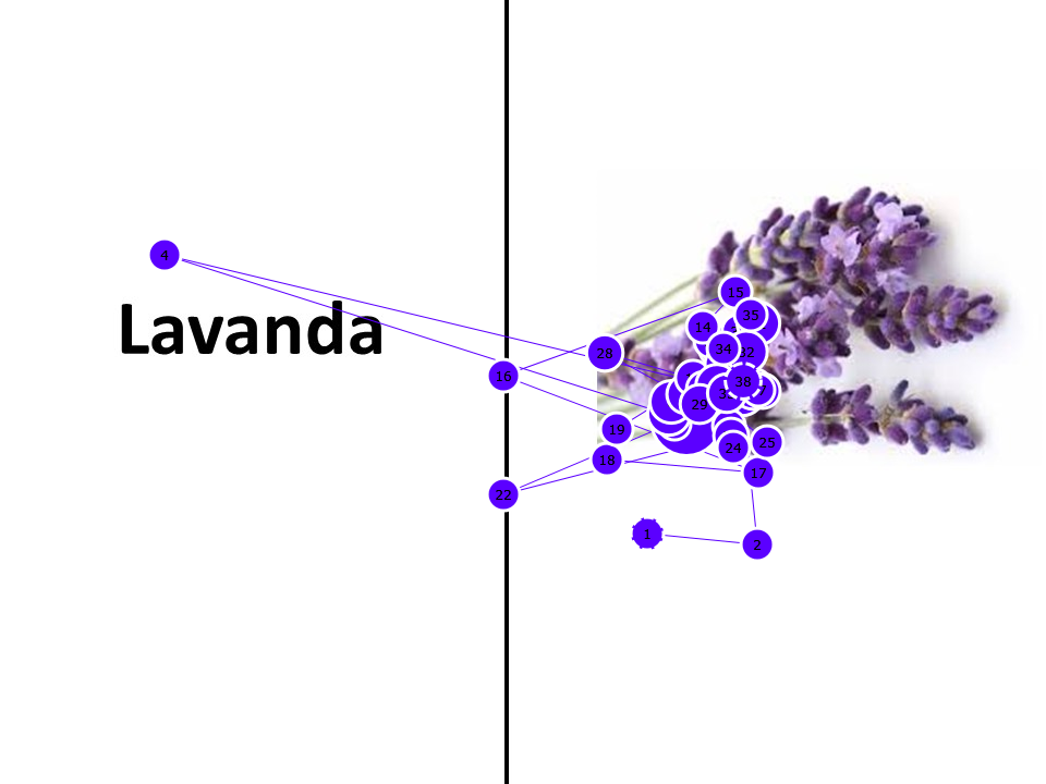 Figure 6 presents an example of response when there is coherence between the three elements that make up the stimulus: the name “Lavanda” or lavender, the image of lavender and the olfactory note that the panelist smelled while looking at the stimulus.