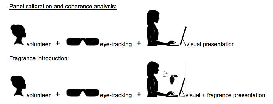 Recently, we published a test in which we found eye-tracking useful in determining how the relationship between olfactory note, name and image is perceived. It is important to design and perform a baseline calibration to know the context of saccadic movement performance when there is and there is not a relationship between the elements that make up the stimulus.