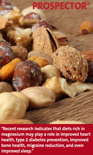 over 300 enzyme reactions. Recent research indicates that diets rich in magnesium may play a role in improved heart health, type 2 diabetes prevention, improved bone health, migraine reduction, and even improved sleep. Research continues to strengthen magnesium’s links to wellness.
