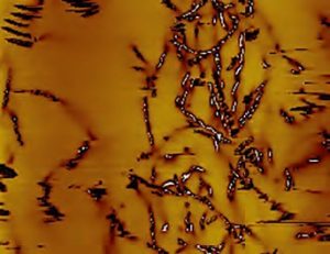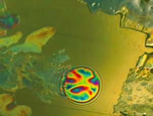 Some formulators use a base oil with a very high viscosity to provide a thicker lubricating film, Lugt says, but his group’s research shows that at ultralow speeds, films are thicker than expected. He attributes this to the contribution of the grease thickener, in addition to that of the base oil, to the thickness of the film.7,8 The thickener’s contribution decreases somewhat as the grease ages and shear forces break down the soap fiber structure, but some of the thickener is always in the contact area9 (see Figure 5).