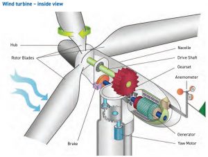 In many wind turbines, gearboxes convert the slow rotation of the main shaft to the faster rotation required for power generation (see Figure 4). Bearings in the generator require a less viscous grease formulation because of the faster operating speeds, and the gearboxes are oil lubricated, Reininga says. Pitch bearings, which adjust the angle of the blades, with respect to the main shaft depending on wind direction, generally produce small oscillations, which require greases with yet another set of properties.