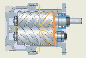 Figure 2. Typical oil injected compressor cross section. Figure courtesy of SKF USA, Inc.