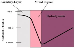 Hunter continues, “Under harsh operating conditions of high loads, low speeds and low lubricant viscosity, the lubricant film thickness might decrease to boundary lubrication conditions. This is because the film thickness and surface roughness are about the same dimension. When this occurs, AW and EP additives are needed to protect the surfaces.” The Stribeck curve is used to understand the different boundary lubrication regimes; it also measures efficacy of product friction. The product that demonstrates the lowest coefficient of friction is likely the best choice (see Figure 5).3 Hunter explains, “If the hydrodynamic oil film is maintained between the metal surfaces, boundary lubrication, where the two surfaces are mostly in contact with each other, will not occur, and AW and EP additives are not required to perform their function.”