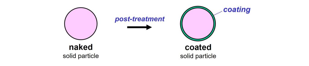 Pigments and fillers are solid particles that are used in paints and inks.1 The chemical composition of the surface of such particles influences the physico-chemical behavior of the particles in the systems in which they are used. Formulators should be aware that solid particles might be post-treated by the producer. Post-treatment is an additional step, in the production process of pigments and fillers, in which each solid particle is coated with another material.