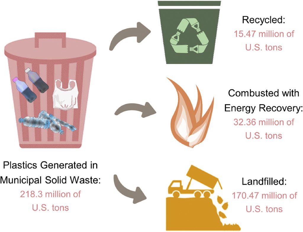 The fate of plastics generated in municipal solid waste in the United States from 1960 to 2017 (Ref 3).