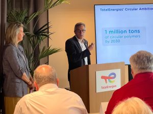 Meanwhile, Elke Berges, business manager of packaging at TotalEnergies, said the company also is working to develop all-PE, monomaterial pouches that are fully recyclable. She added that at the firm’s Synova site in northwest France, they are working to close the loop by recycling PP automotive bumpers and door handle from end-of-life vehicles.