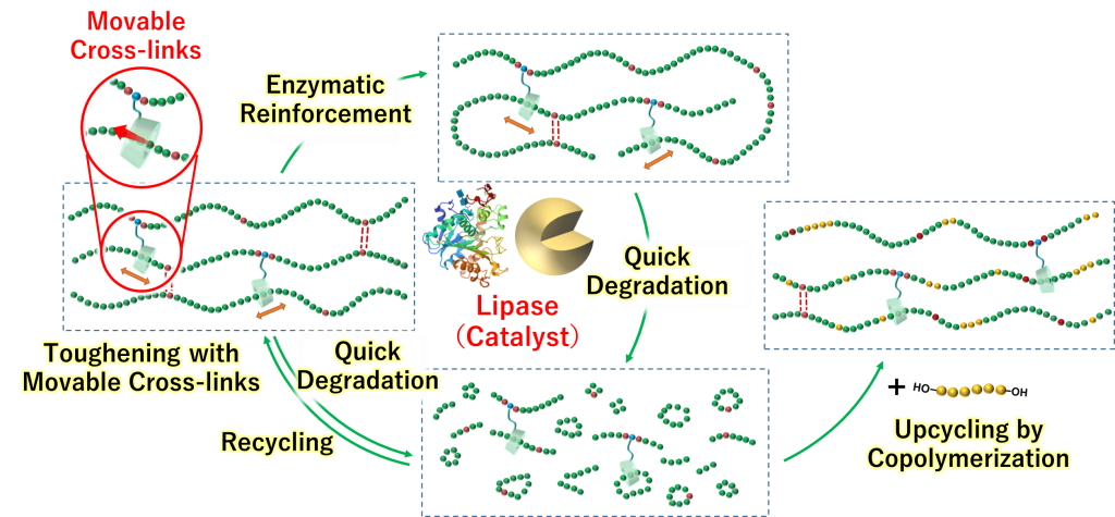 The researchers have revealed that developing polymers with movable crosslinks not only increases their strength but also promotes degradation by enzymes under mild conditions.