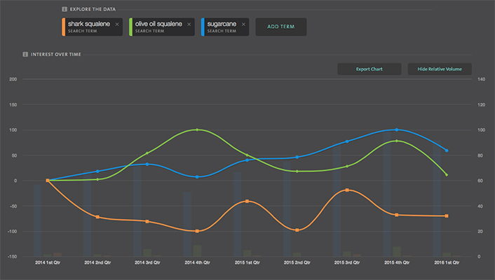 Learn more about search trends for plant-based squalene with Industry Analytics.